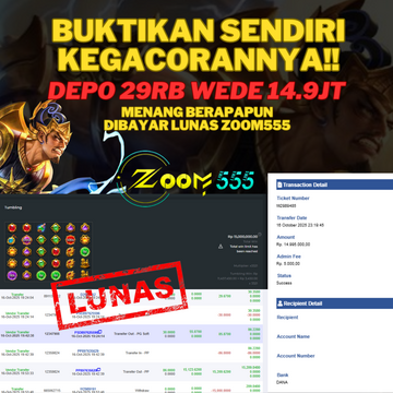 Sebagai situs slot terpercaya, Zoom555 memang dikenal memberikan peluang nyata untuk semua pemain. Fitur RTP live tinggi, promo deposit via QRIS, hingga bonus harian membuat pengalaman bermain semakin seru sekaligus menguntungkan. Tak heran, banyak member loyal yang akhirnya berhasil mencetak kemenangan spektakuler.