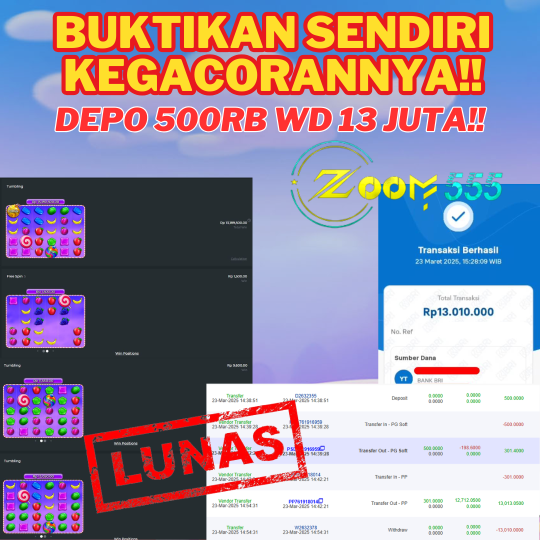 Dunia perjudian online selalu penuh dengan kejutan, dan kali ini, sebuah cerita luar biasa datang dari seorang member setia dengan nama pengguna Zoom555. Dalam sebuah kejadian yang tak terduga, pola rahasia yang digunakan oleh Zoom555 terbukti menjadi kunci keberhasilan yang membawa seorang member meraih jackpot besar. Kemenangan ini membuktikan bahwa dengan strategi yang tepat, keberuntungan bisa datang kapan saja.
